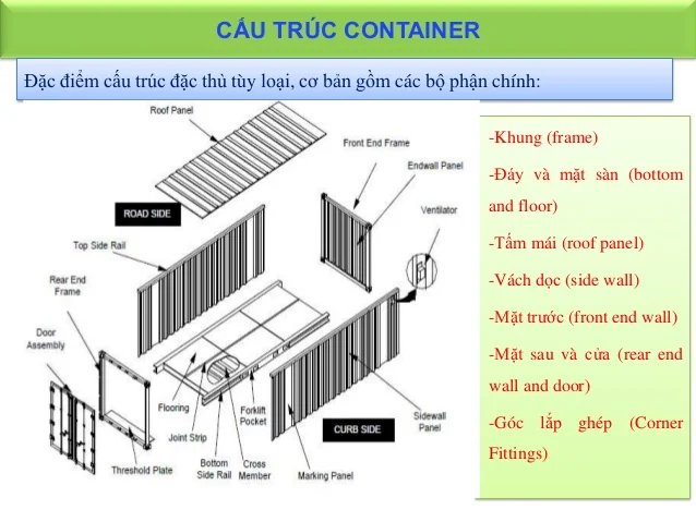 Một container tiêu chuẩn gồm các bộ phận chính: